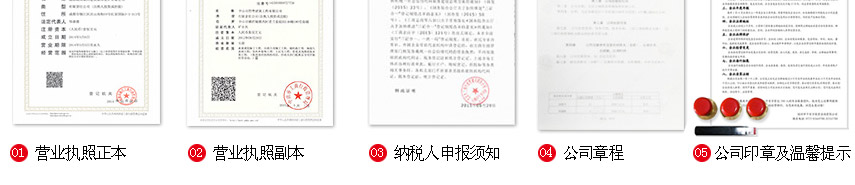 (1)營業(yè)執(zhí)照(三證合一:營業(yè)執(zhí)照,稅務(wù)登記證,組織機構(gòu)代碼,刻章登記卡)